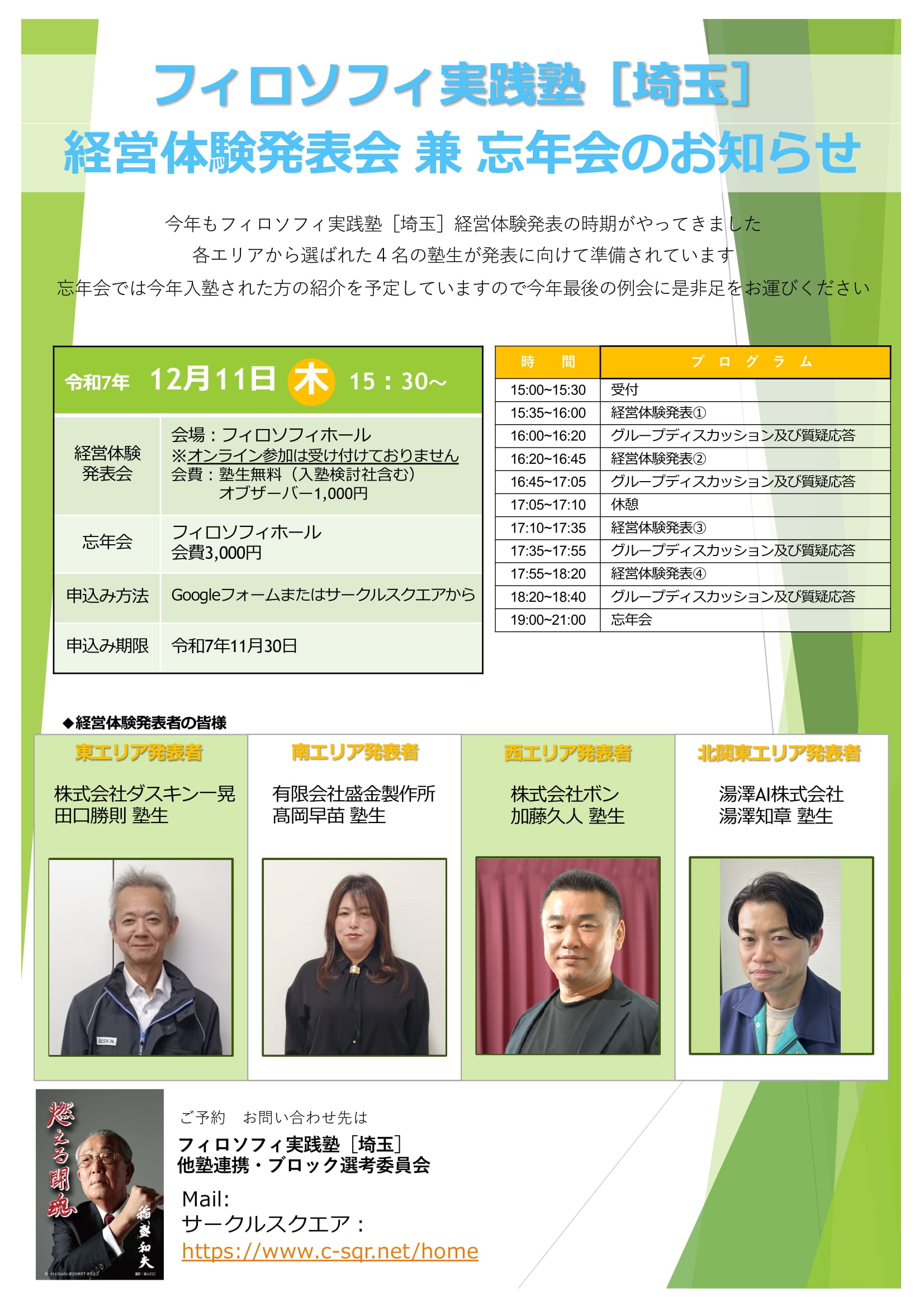 平素、フィロソフィ実践塾[埼玉]の活動にご理解、ご協力いただきありがとうございます。